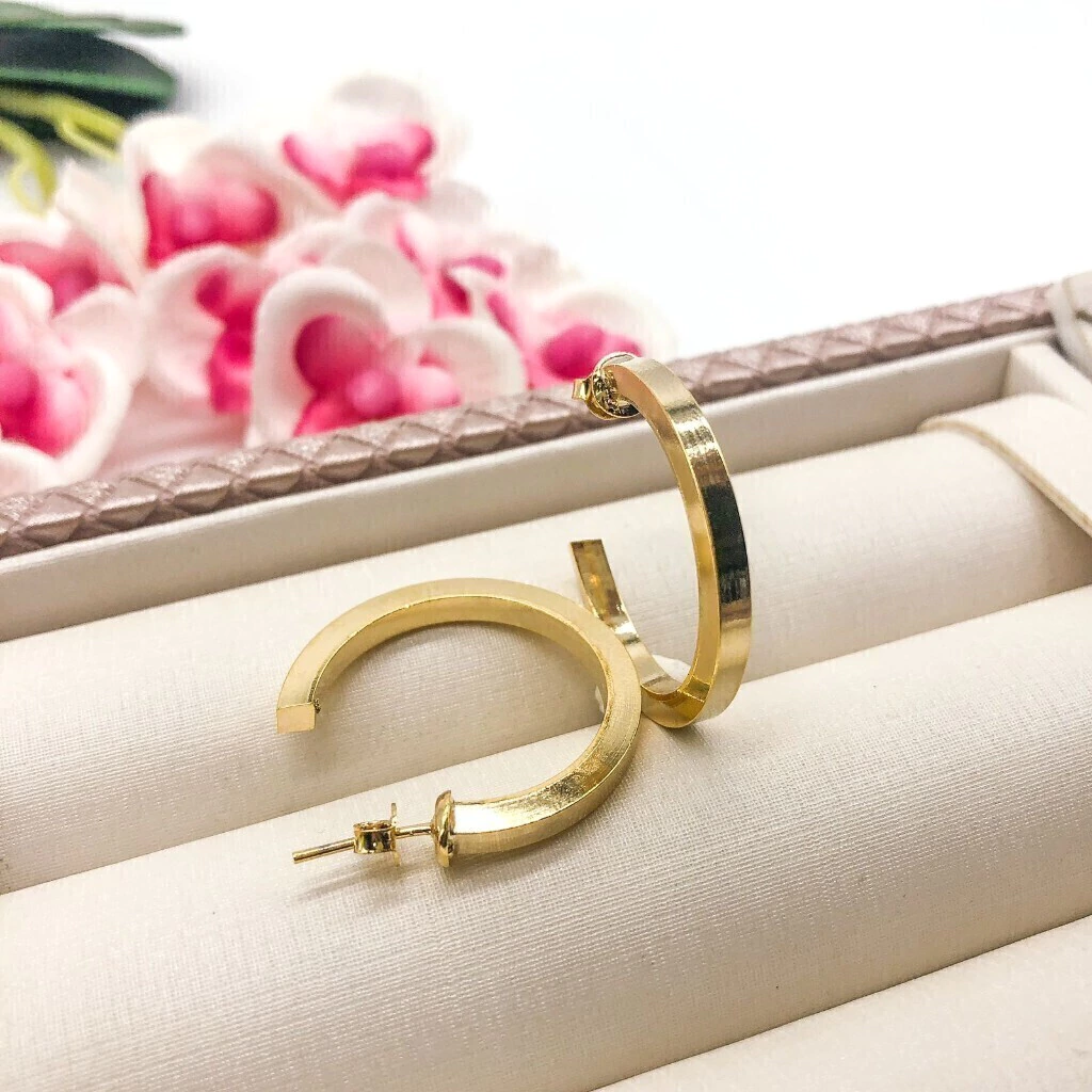 ARGOLA FOLHEADA A OURO LISA GROSSA 3CM