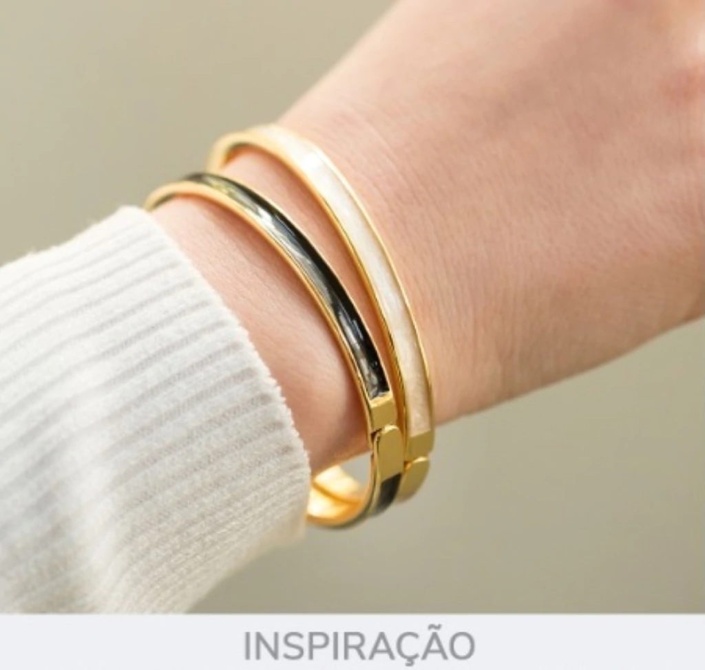 BRACELETE FINO ESMALTADO PEROLA OURO 67MM - VERNIZ ITALIANO
