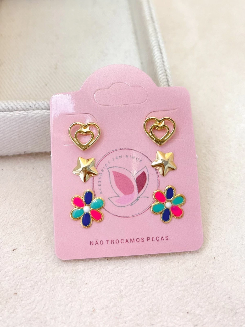 BRINCO CARTELA 3 PARES FOLHEADO A OURO