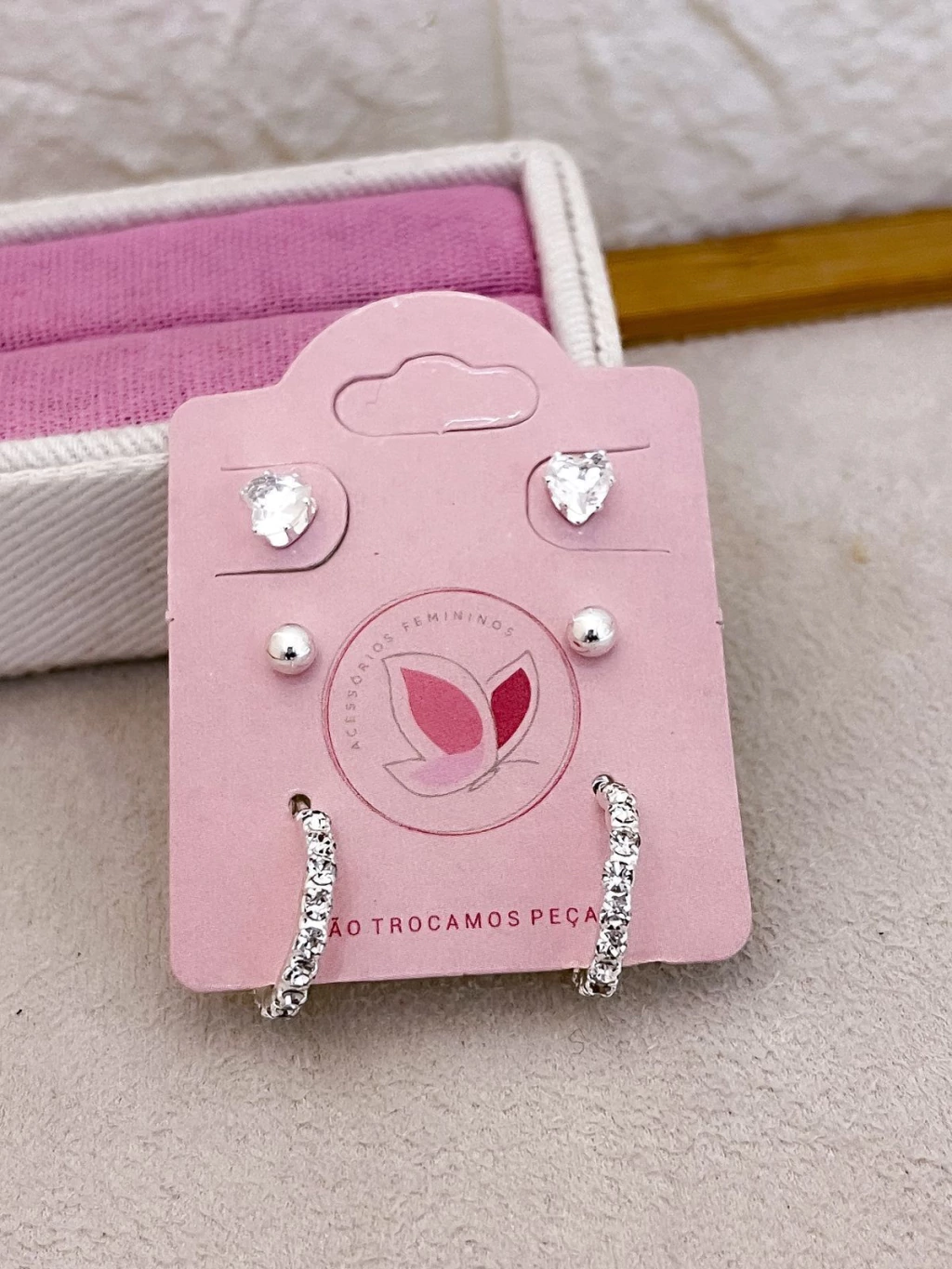 BRINCO CARTELA 3 PARES FOLHEADO A PRATA