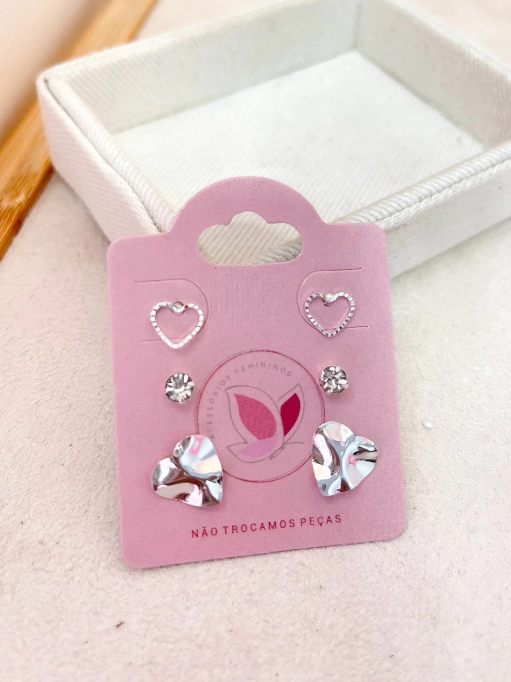 BRINCO CARTELA 3 PARES FOLHEADO A PRATA