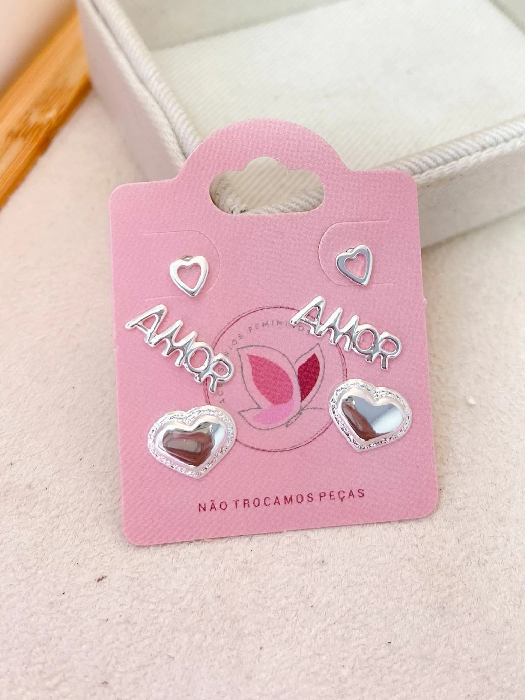 BRINCO CARTELA 3 PARES FOLHEADO A PRATA