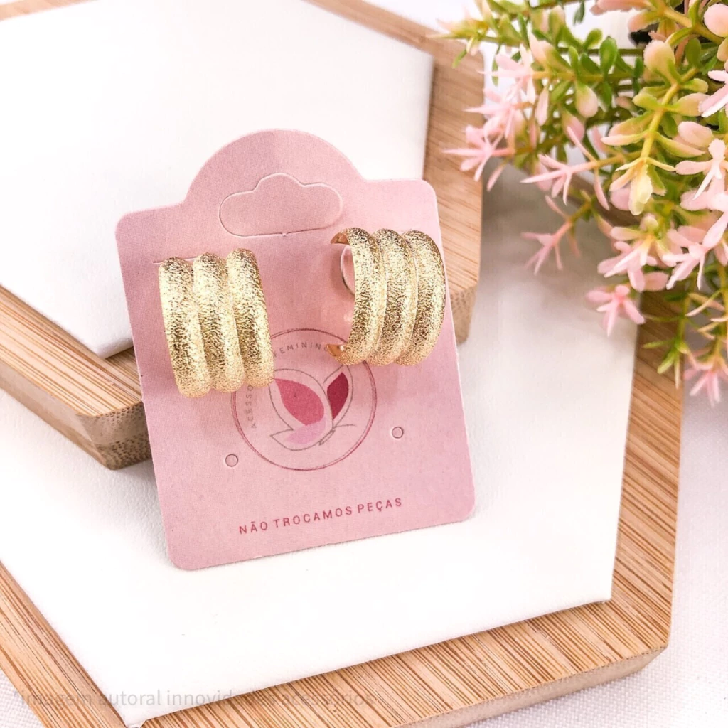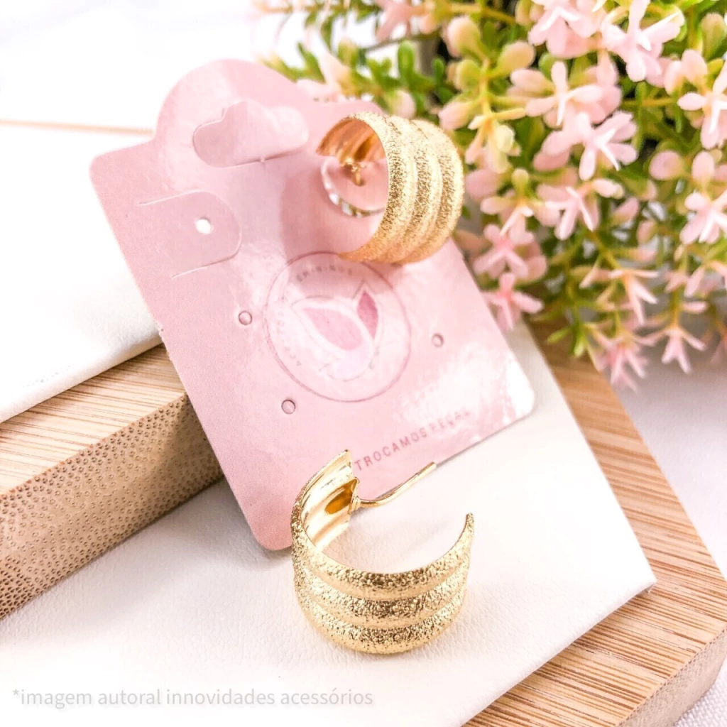 BRINCO FOLHEADO A OURO ARGOLA FOSQUEADA TRIONDA