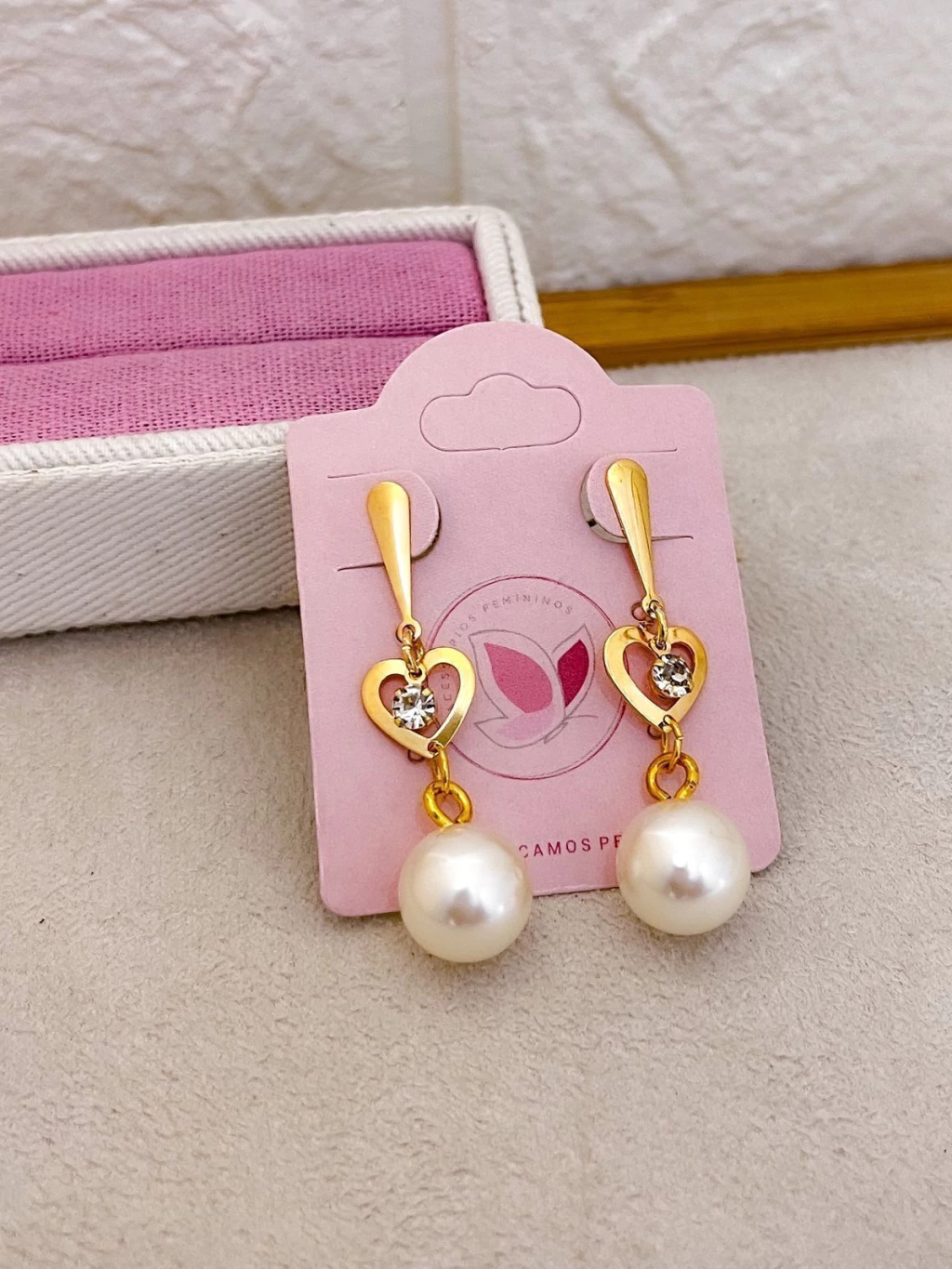 BRINCO FOLHEADO A OURO - CORAÇÃO