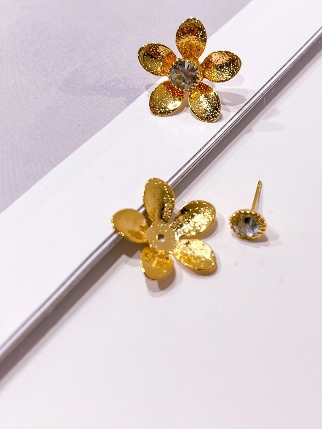 BRINCO FOLHEADO A OURO - FLOR 2 EM 1