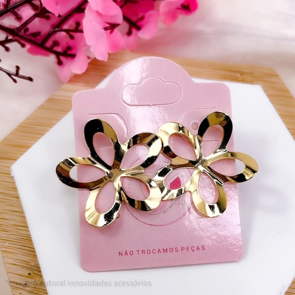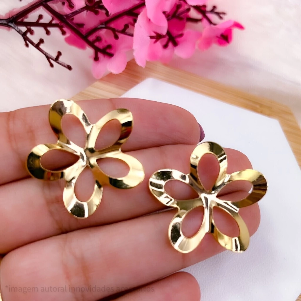BRINCO FOLHEADO A OURO FLOR ORGANICO