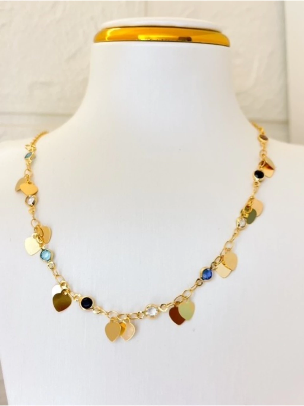 COLAR FOLHEADO A OURO - CORAÇÕES TIFANY COLORIDO