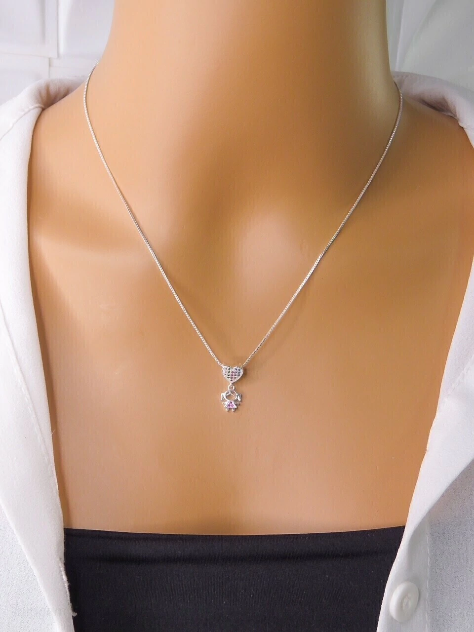 COLAR FOLHEADO A PRATA - CORRENTE VENEZIANA FILHA CORAÇÃO CRAVEJADO ZIRCONIA