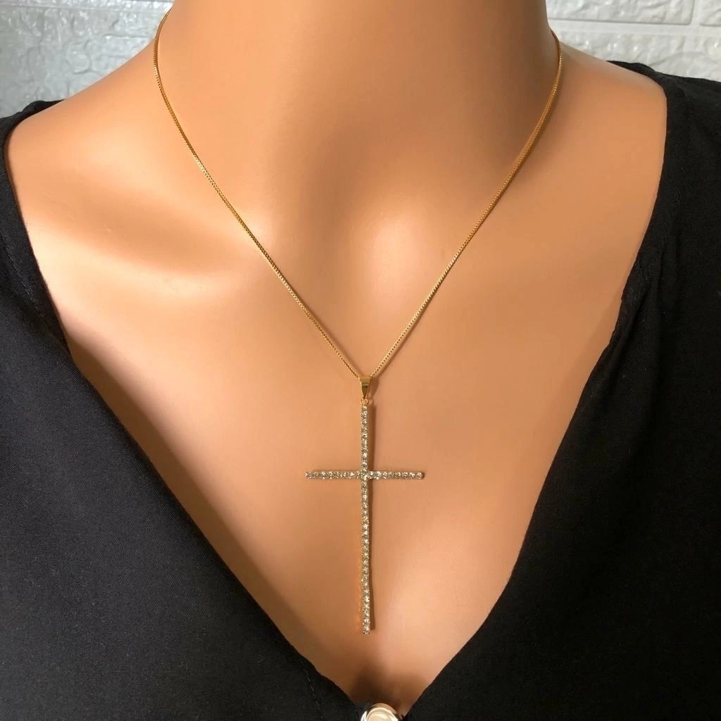 COLAR JOINHA FOLHEADO DOURADO - CRUZ CRISTAL