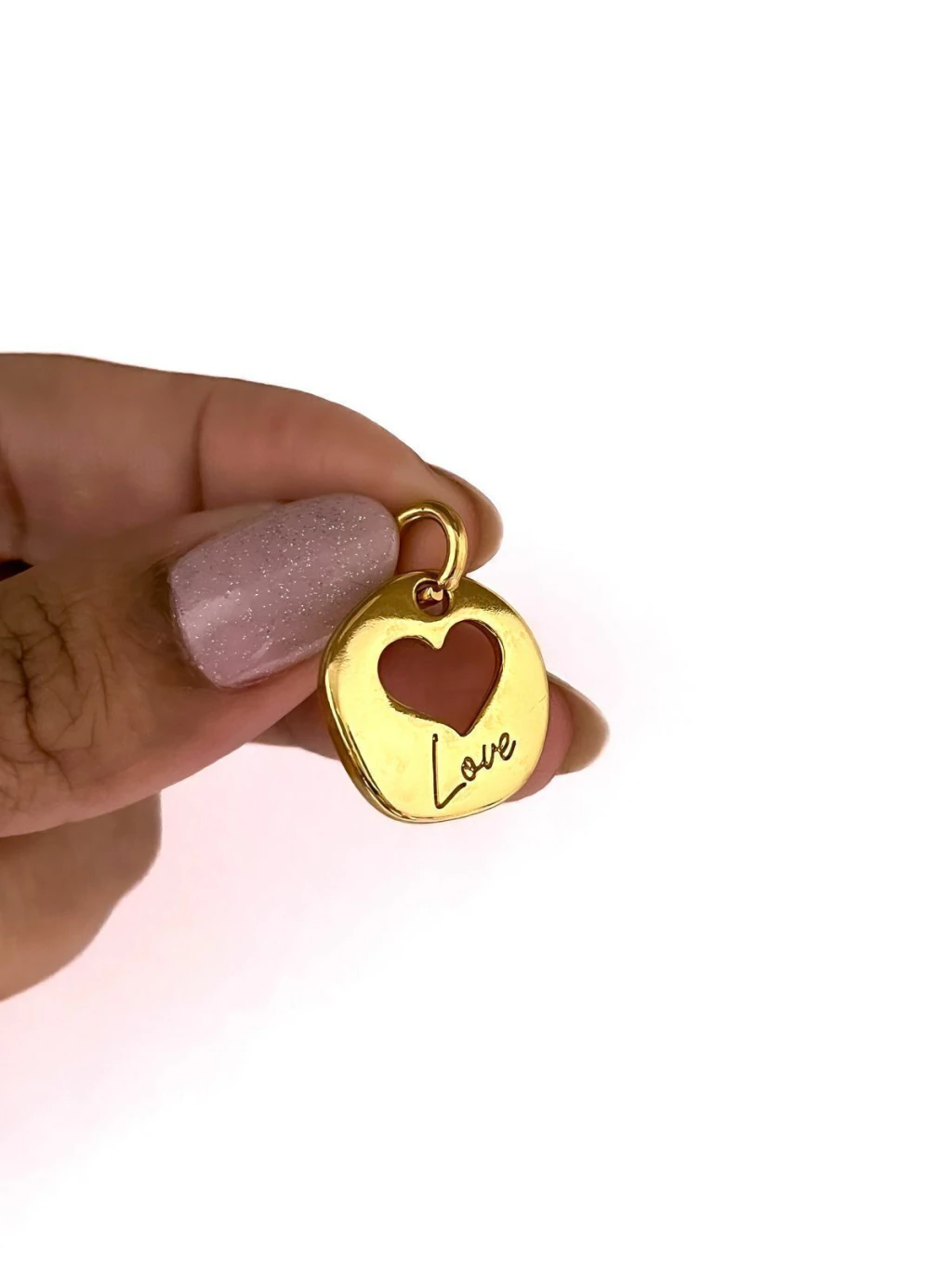 PINGENTE BANHADO A OURO E VERNIZ ITALIANO - CORAÇÃO AMOR