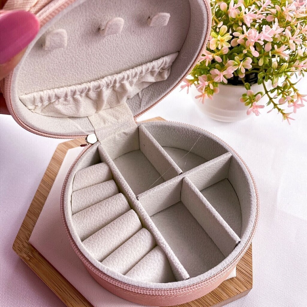 Elegância Compacta: Com medidas perfeitas de 10x10x5 cm, nosso Porta Joia de Bolsa é o companheiro ideal para viagens, passeios e eventos. Seu design compacto permite que você o leve facilmente em sua bolsa ou mochila, mantendo suas joias sempre ao alcance.