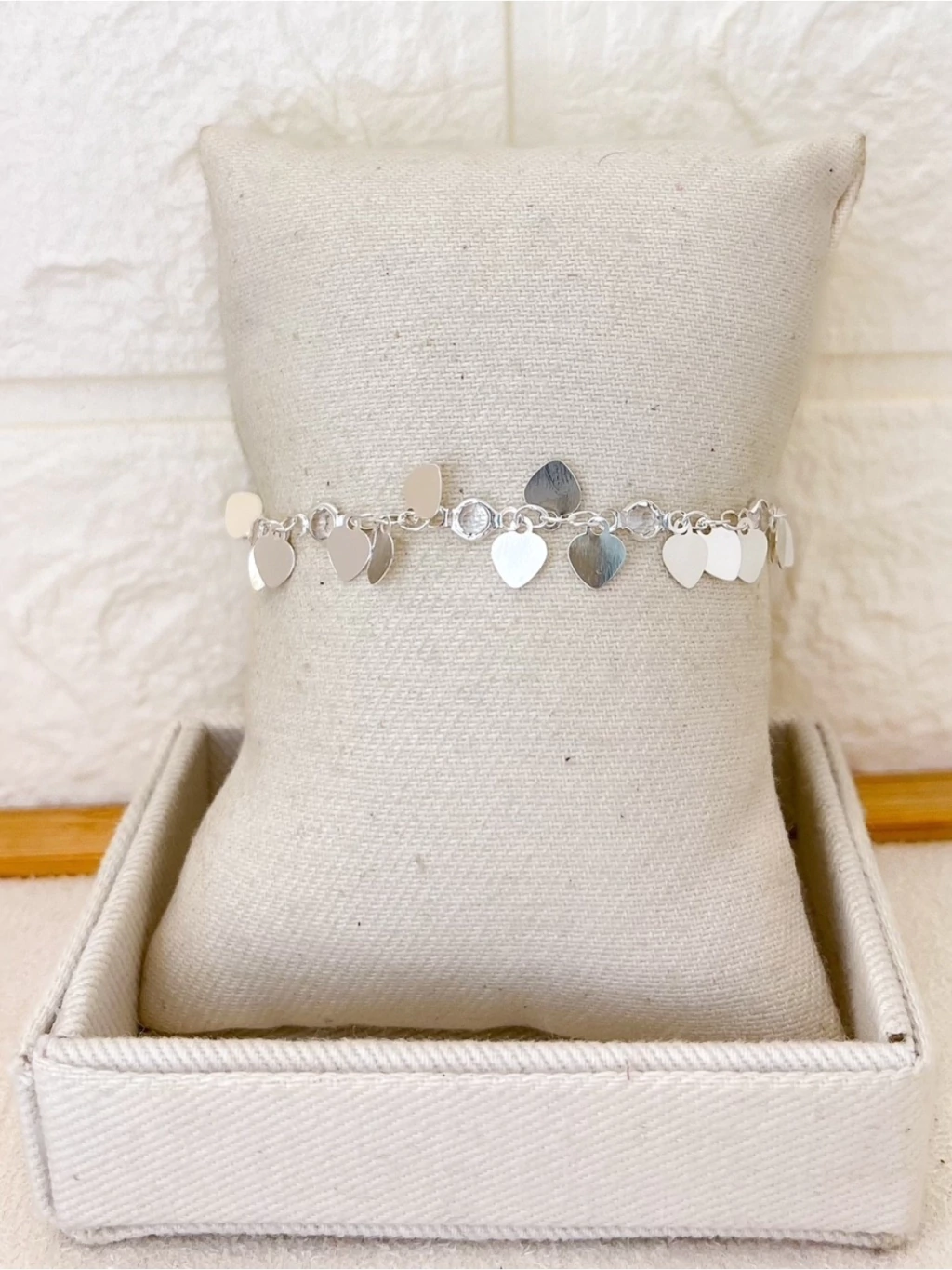 PULSEIRA FOLHEADA A PRATA 925 - MEDALHINHAS DE CORAÇÃO