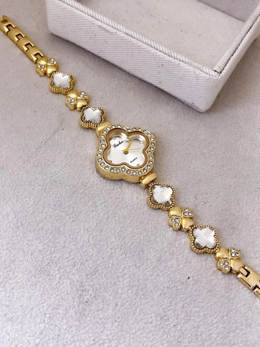 RELOGIO ANALÓGICO TREVO DOURADO - CRISTAL