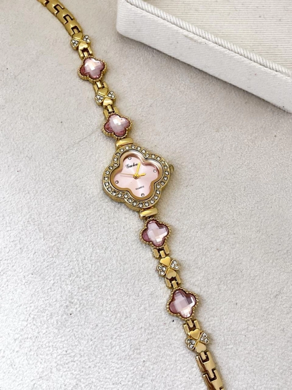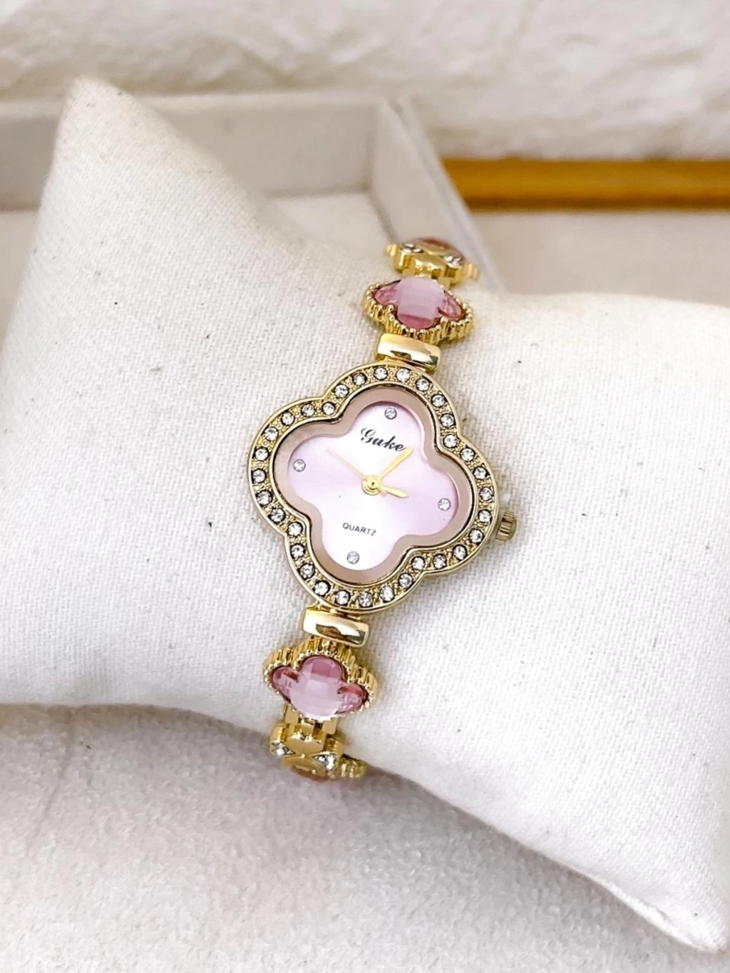 RELOGIO ANALÓGICO TREVO DOURADO - ROSA