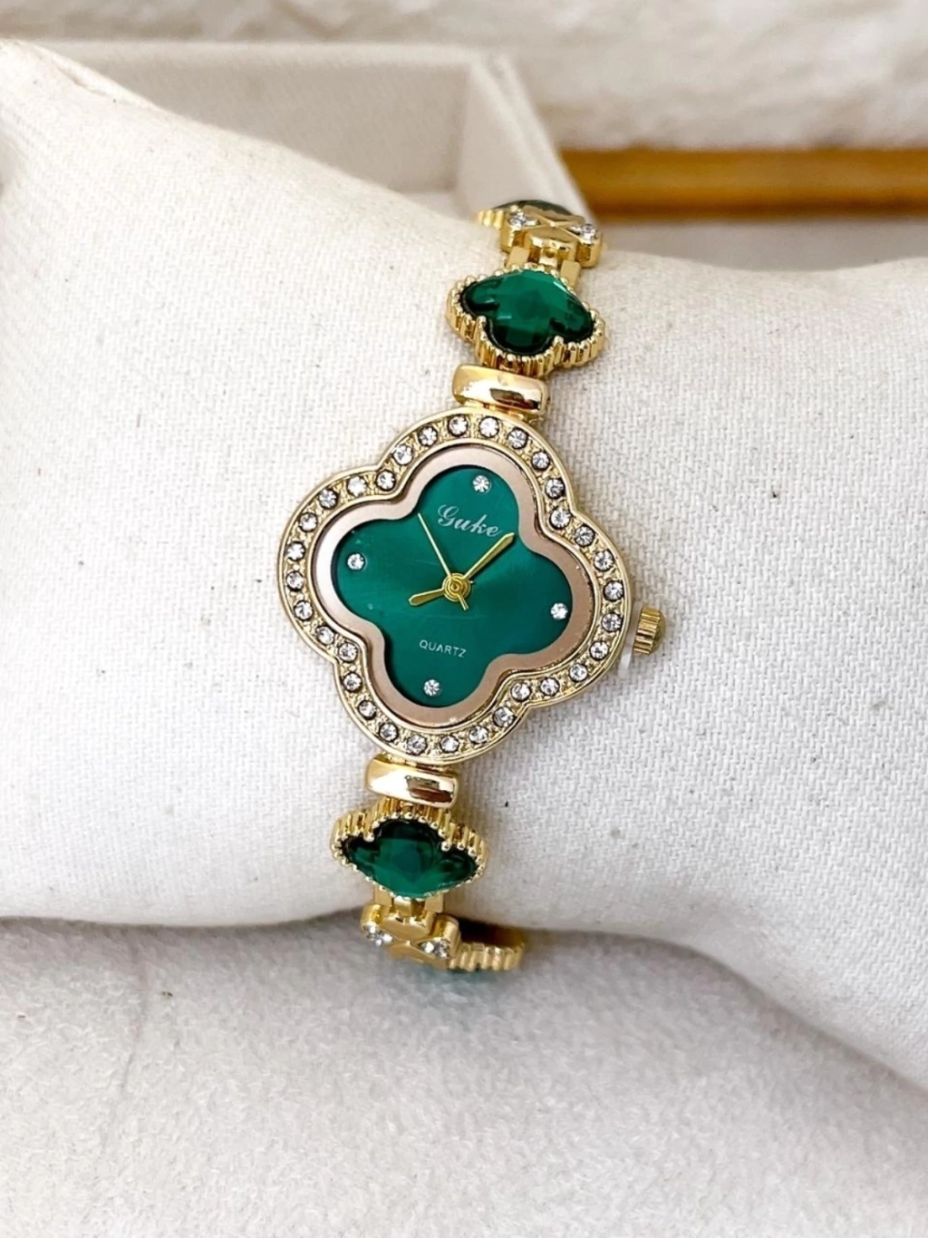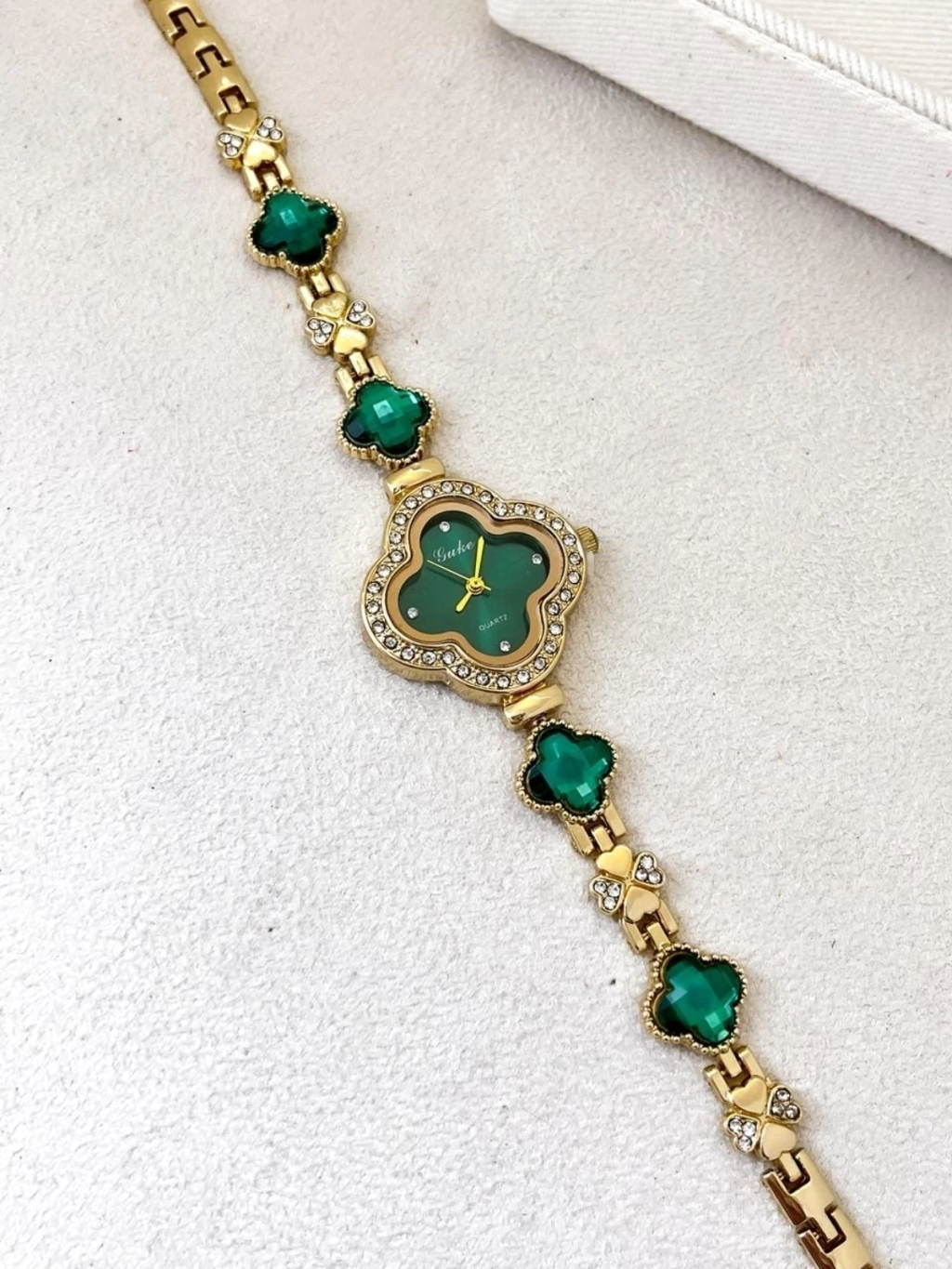 RELOGIO ANALÓGICO TREVO DOURADO - VERDE