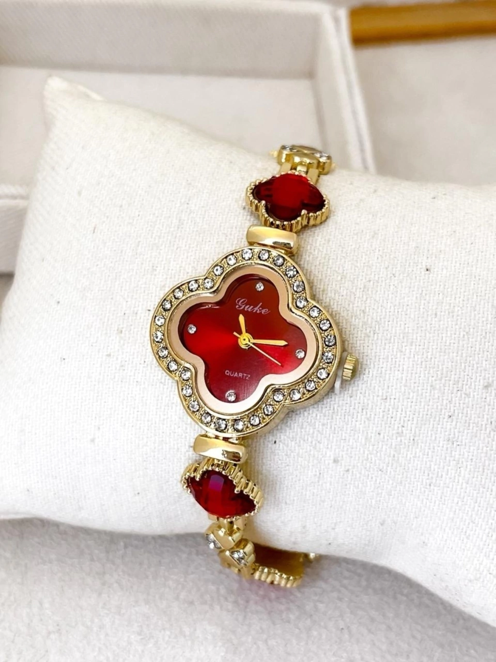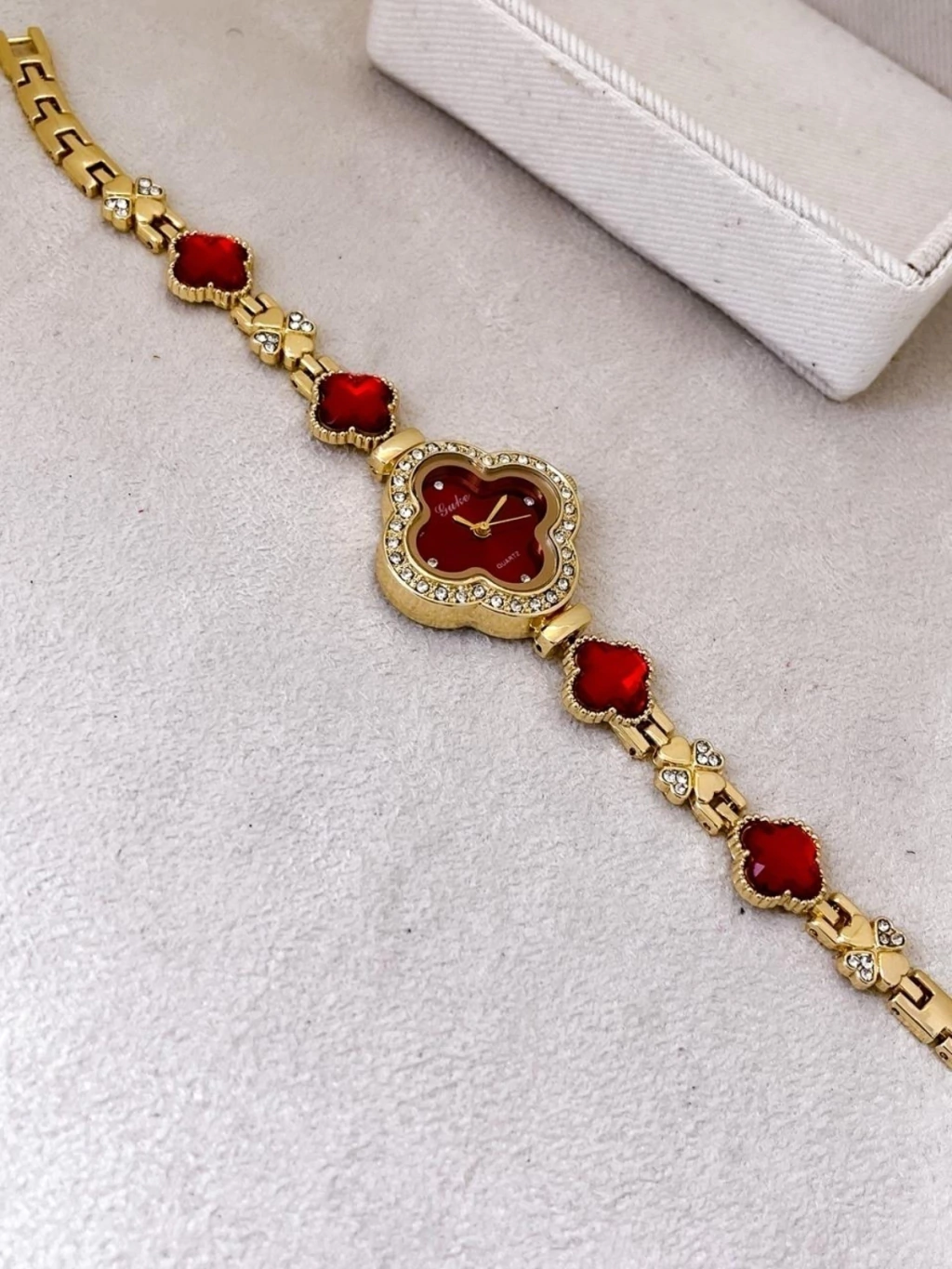 RELOGIO ANALÓGICO TREVO DOURADO - VERMELHO