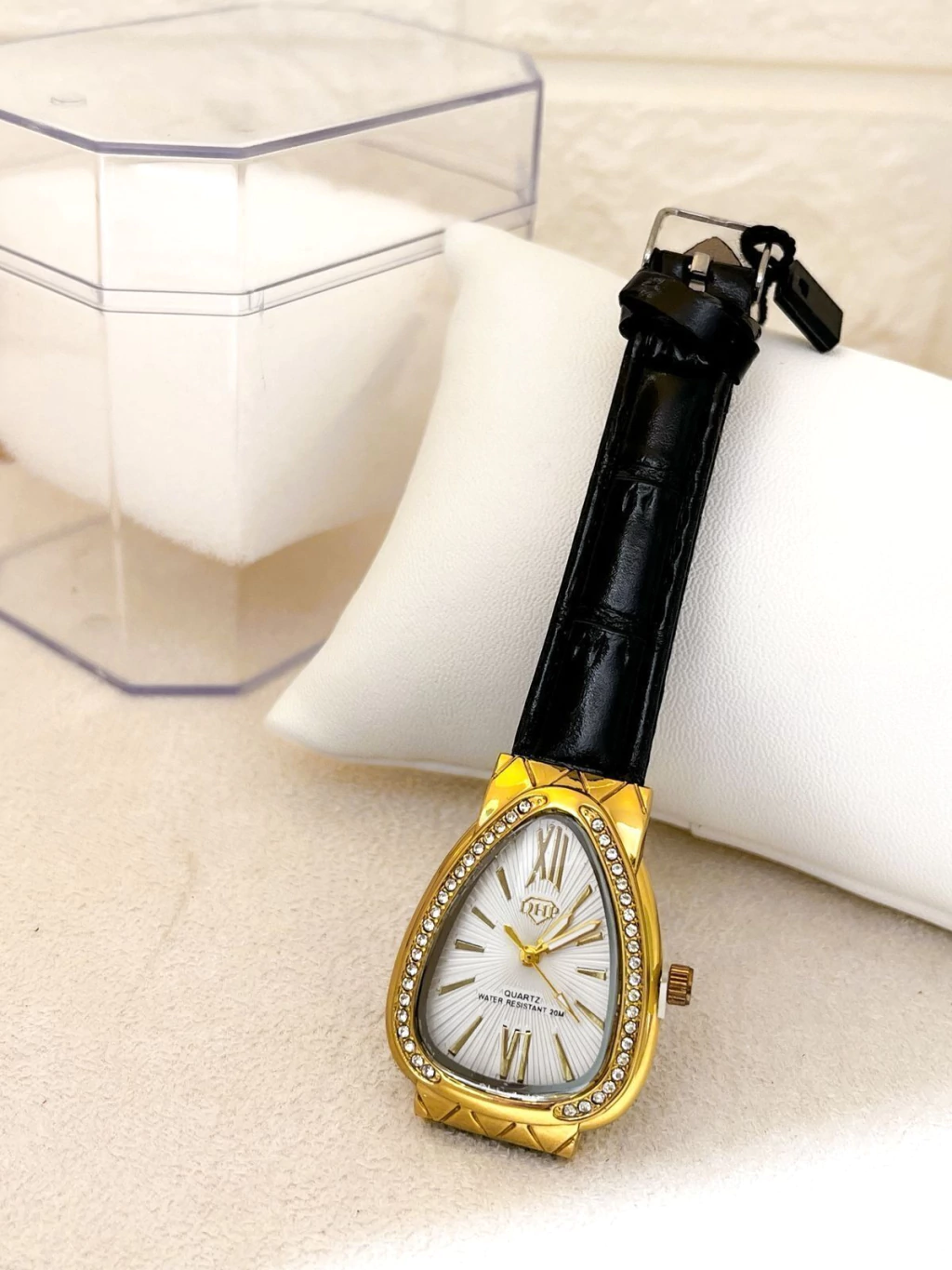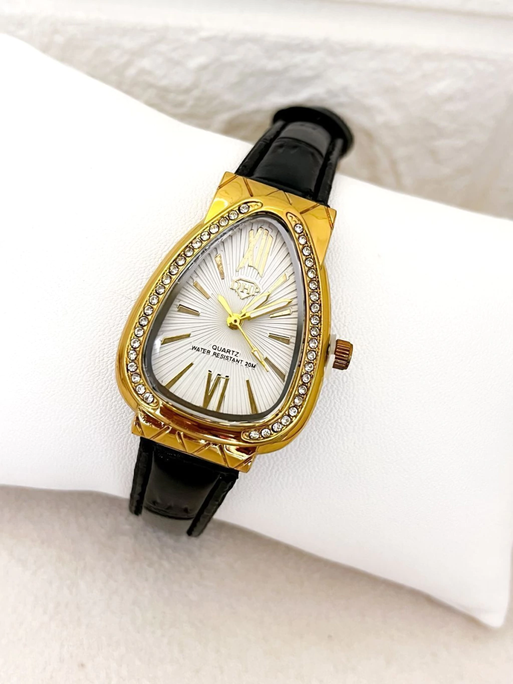 Relógio feminino com design moderno em formato de gota (cabeça de cobra).