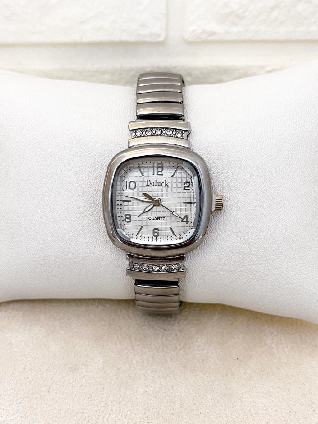 RELÓGIO FEMININO ANALÓGICO PULSEIRA ELASTICA - QUADRADINHO PRATEADO
