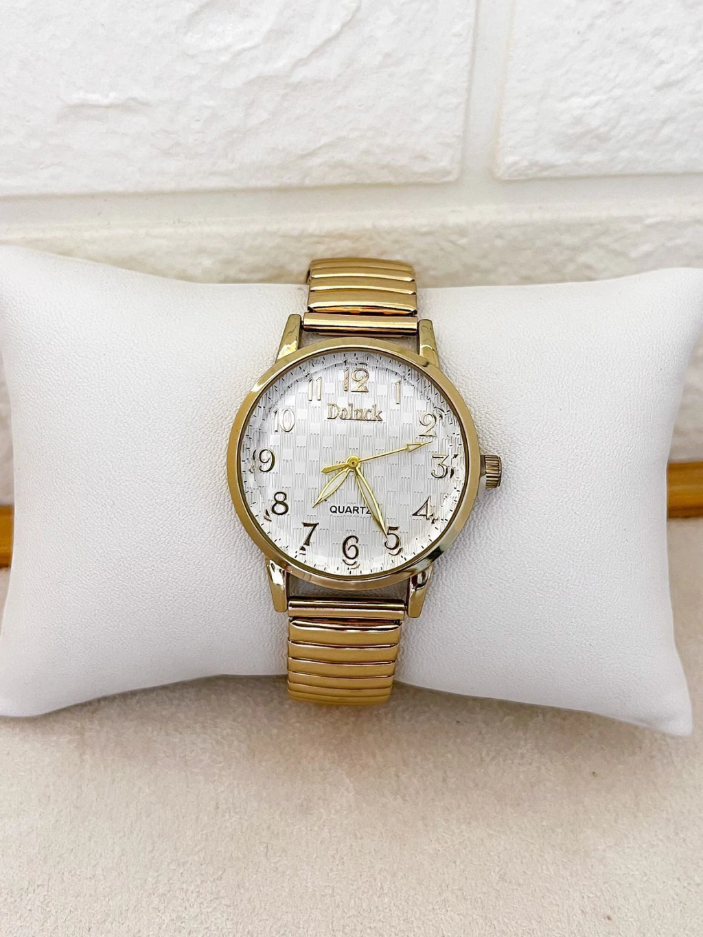 RELÓGIO FEMININO ANALÓGICO PULSEIRA ELASTICA - REDONDO MÉDIO DOURADO